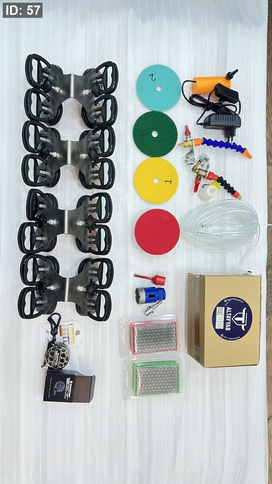 بكج كامل طرمبة مي. زواية تثيت. ورق حف. جلدة. كاسة ٣،٥. وكاسة ٦ ميلة ليف حمرا + خضرا + متر
